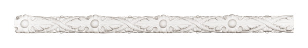 Гипсовая декоративная панель со сложным повторяющимся узором. Основу композиции составляют равномерно расположенные выпуклые шары, между которыми размещены резные листья и два переплетённых элемента в виде стилизованных ветвей. Вдоль нижнего края полосы проходит ряд небольших выпуклостей, завершающих орнамент.