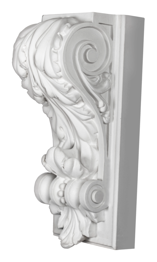Кронштейн изготовлен из высококачественного гипса, отличается прочностью и простотой монтажа. Он может использоваться как декоративная консоль, опора для полок, элемент оформления карнизов или самостоятельный акцент в интерьере. Станет изысканным решением для пространств в стиле неоренессанса, барокко, классицизма или ар-нуво, привнося в них историческую элегантность, художественную сложность и атмосферу утончённой роскоши.