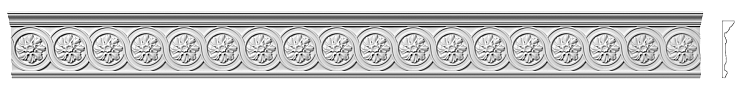 Орнамент обладает глубоким рельефом, где каждый луч и изгиб создаёт игру света и тени, добавляя поверхности объёма и динамики. Этот лаконичный, но насыщенный узор сочетает в себе точность геометрии и декоративную изысканность, делая карниз универсальным акцентом для современных и классических интерьеров.