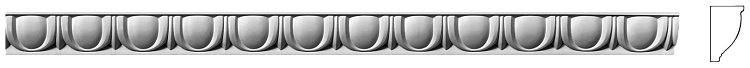 Карниз с геометрическим орнаментом, построенный на ритмичном повторении выпуклых полукруглых элементов, напоминающих форму щита или букву «U». Каждый элемент отделён от соседних вертикальными плоскими выступами, что подчёркивает структурную чёткость и создаёт выразительный светотеневой контраст. Над рядом полукругов проходит горизонтальная прямая полоса, формирующая лаконичный верхний край и завершающая композицию.